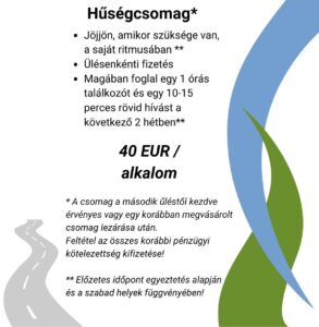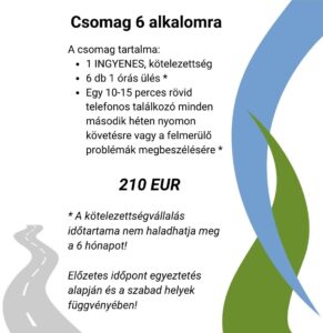 * Habár választhat egyszeri találkozót is standard áron, annak érdekében, hogy jelentős és hosszú távú hatást tapasztaljon, ajánlom, hogy egy hosszabb coaching folyamatot vállaljon fel. Ennek érdekében tudok ajánlani testreszabott CSOMAGÁRAKAT az Ön igényeit figyelembe véve. Amennyiben egy hosszabb coaching folyamat iránt kötelezi el magát garantáltan alacsonyabb árakat tudok ajánlani a standardnál.