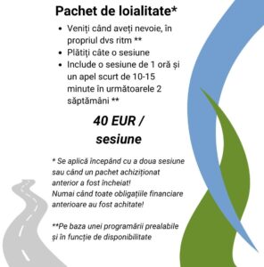 În acest scop vă pot oferi PREȚURI DE PACHET care se potrivesc nevoilor dumneavoastră. Dacă vă angajați într-un proces de coaching mai lung vă pot garanta prețuri mai mici decât cel standard.